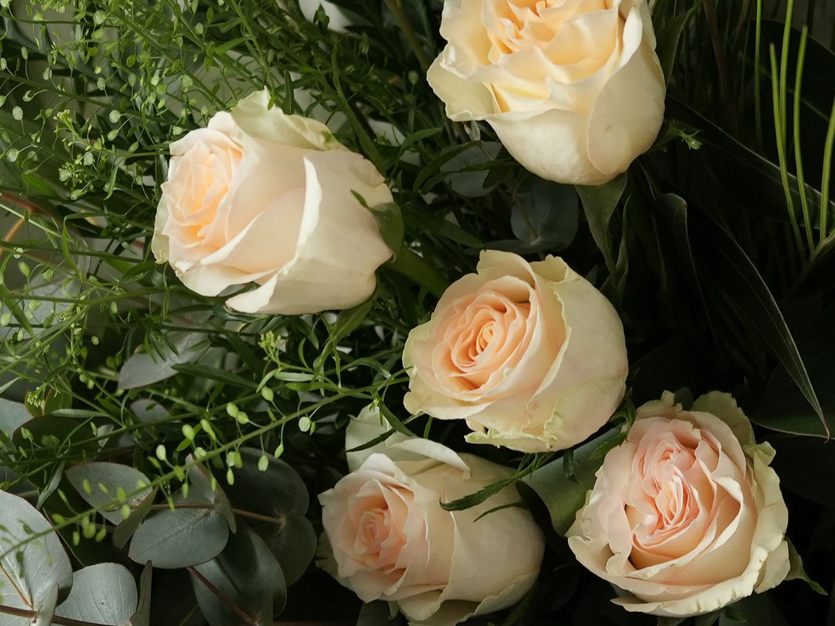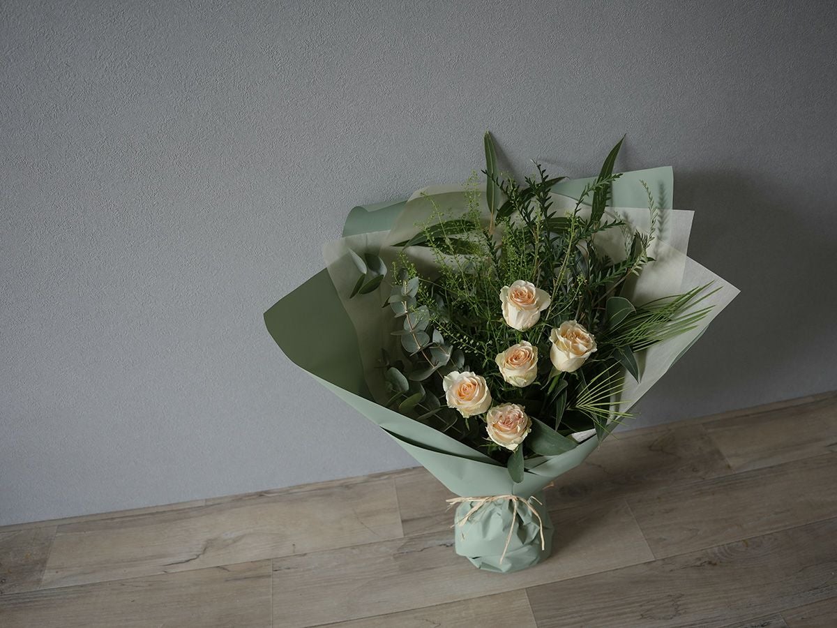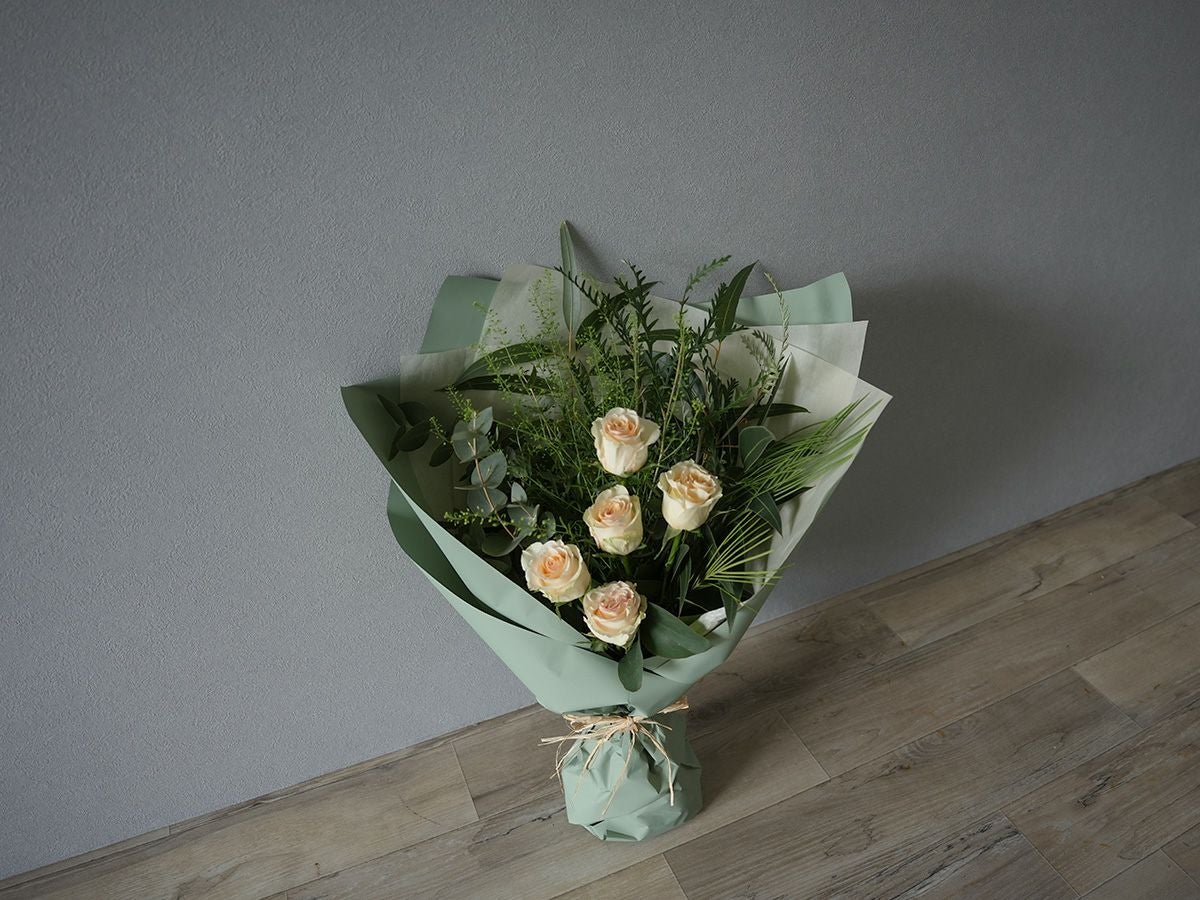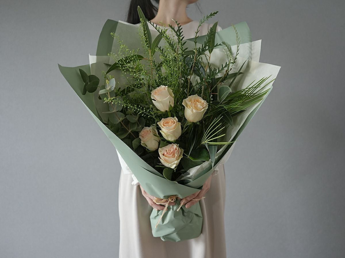 バラに季節のグリーン(葉物)を合わせたローズブーケ。