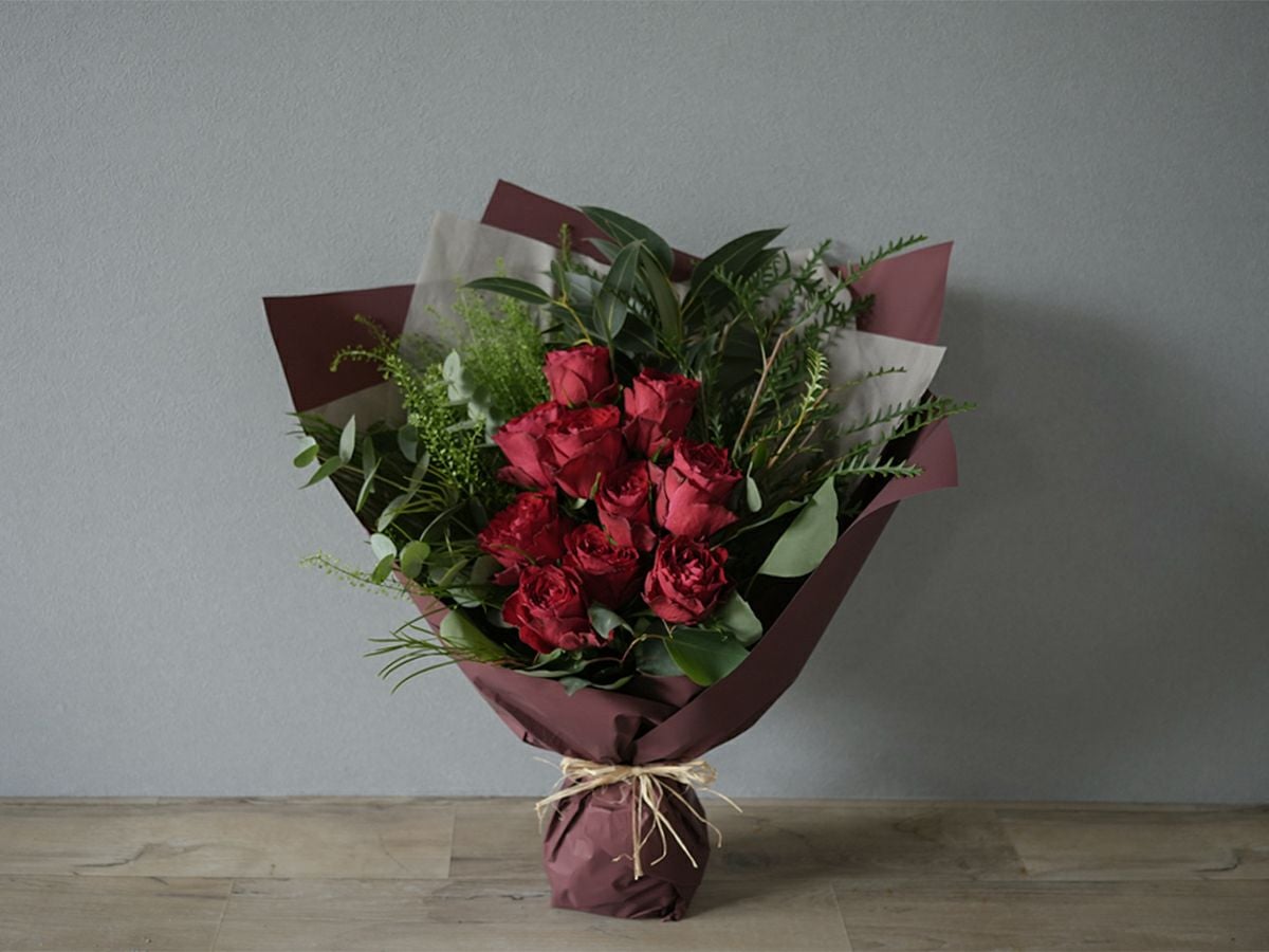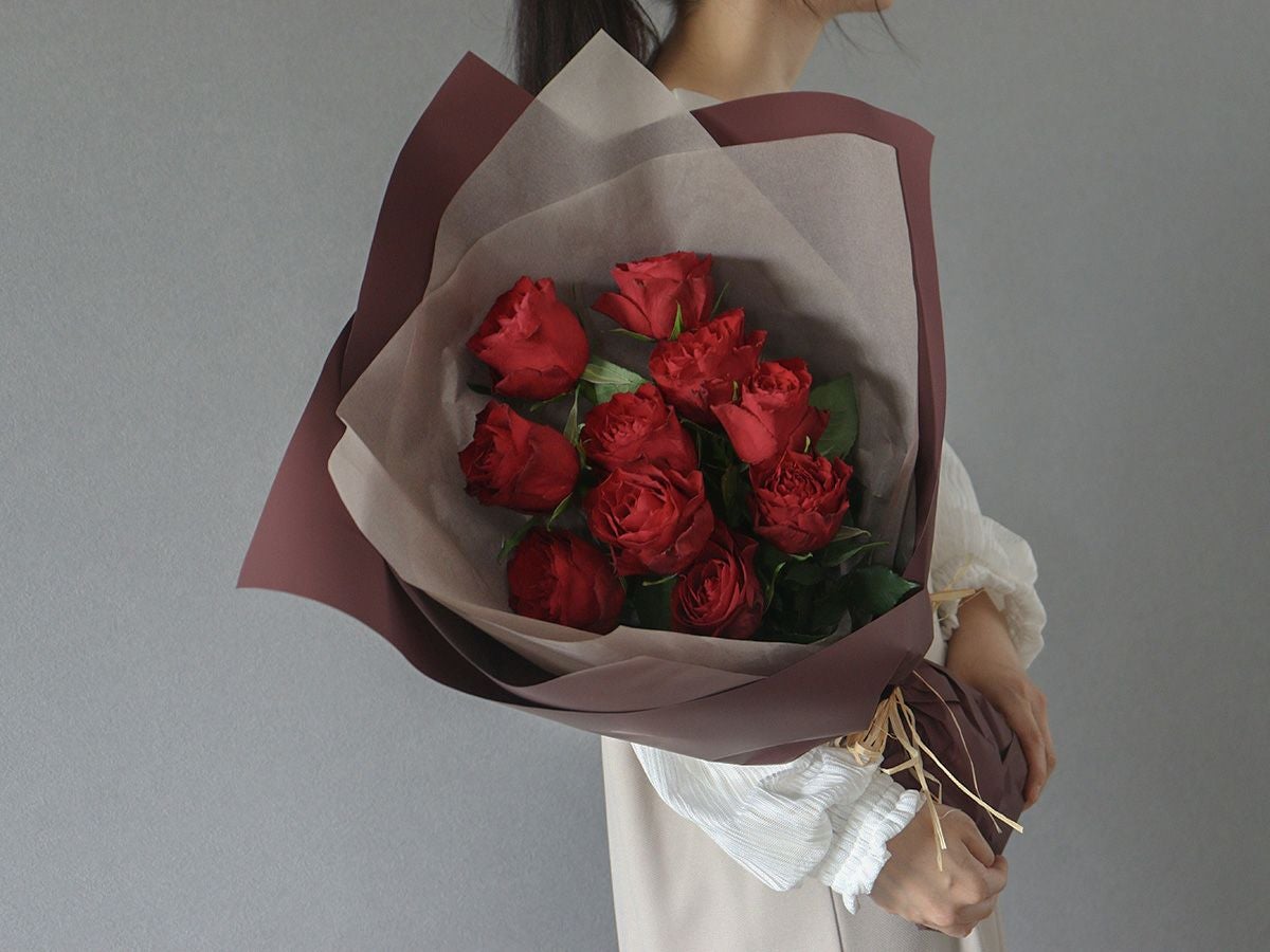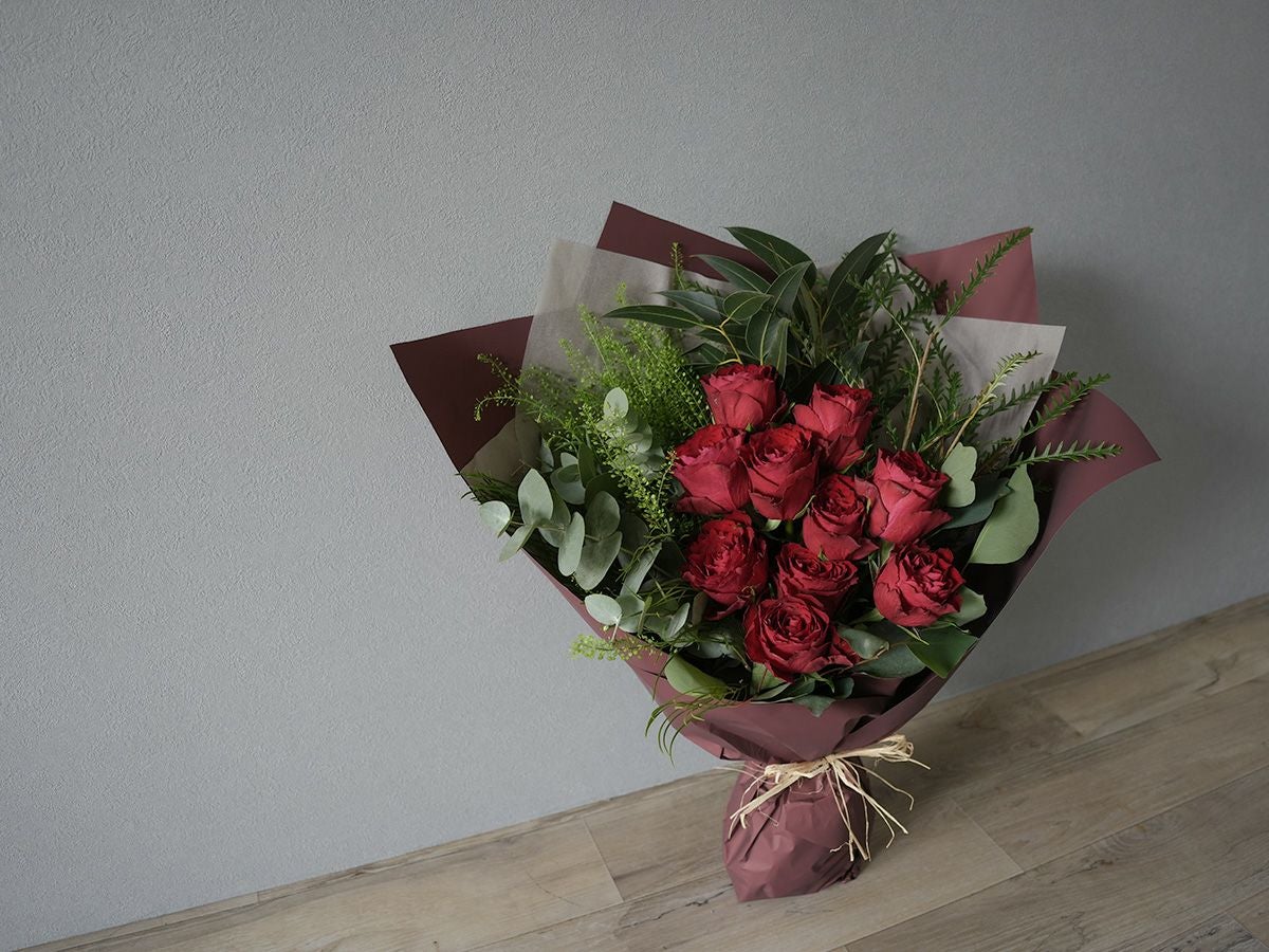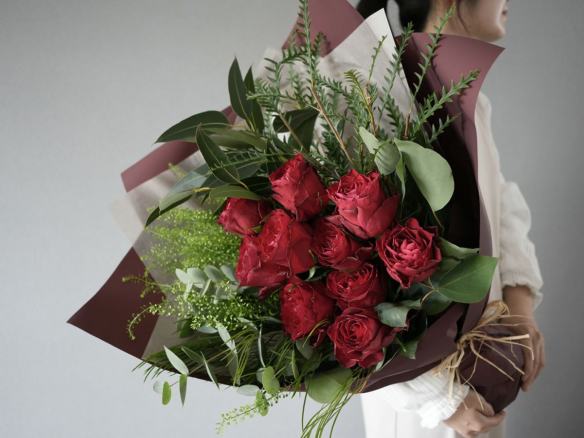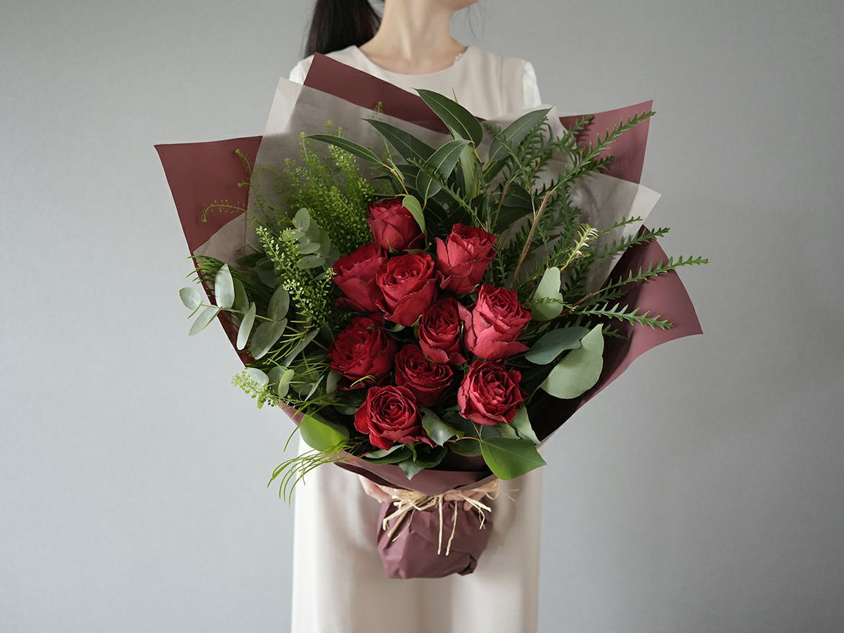 ソジャンミ農園のローズブーケ:マダムレッド10本と季節のグリーン