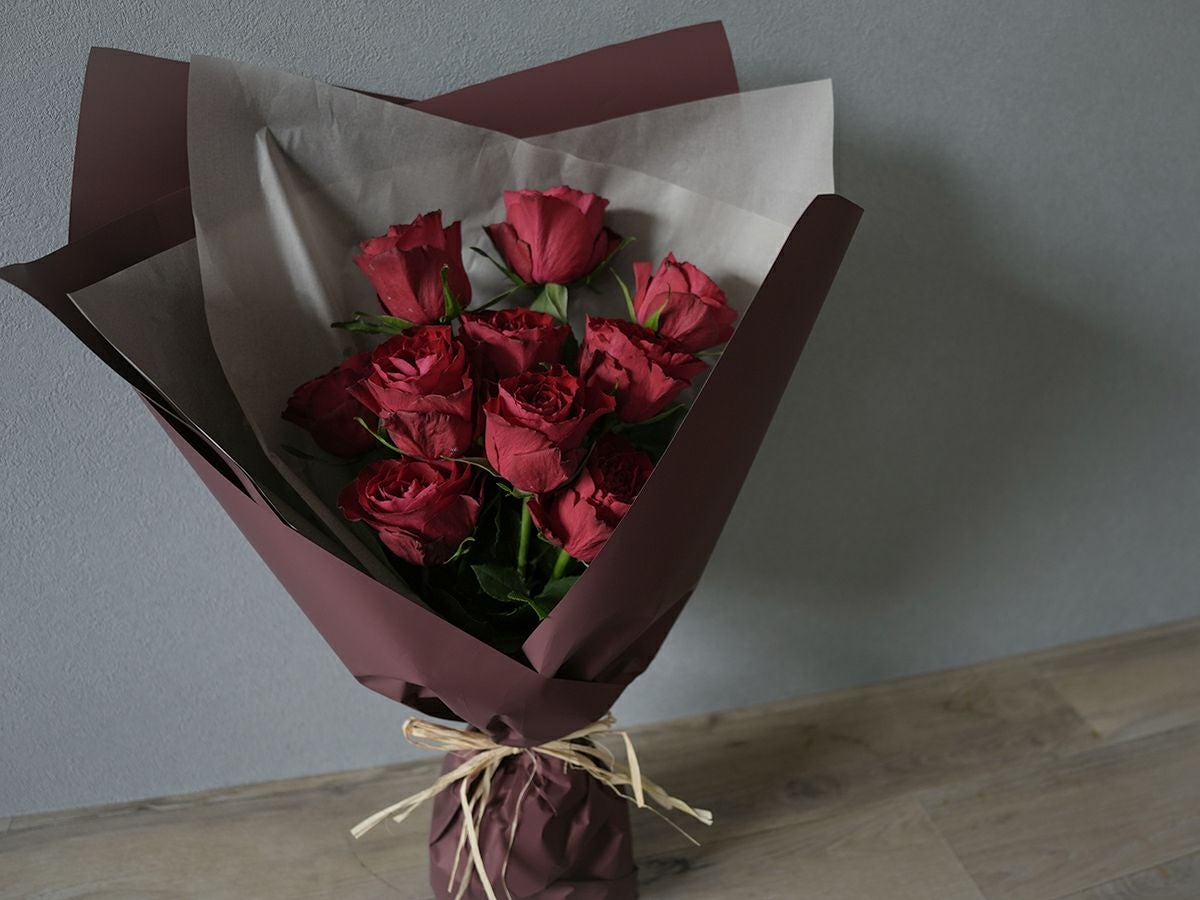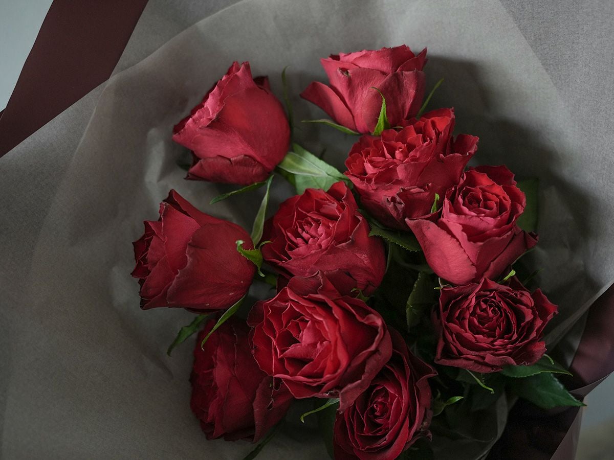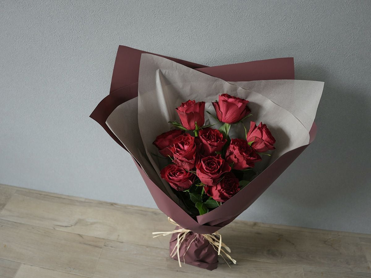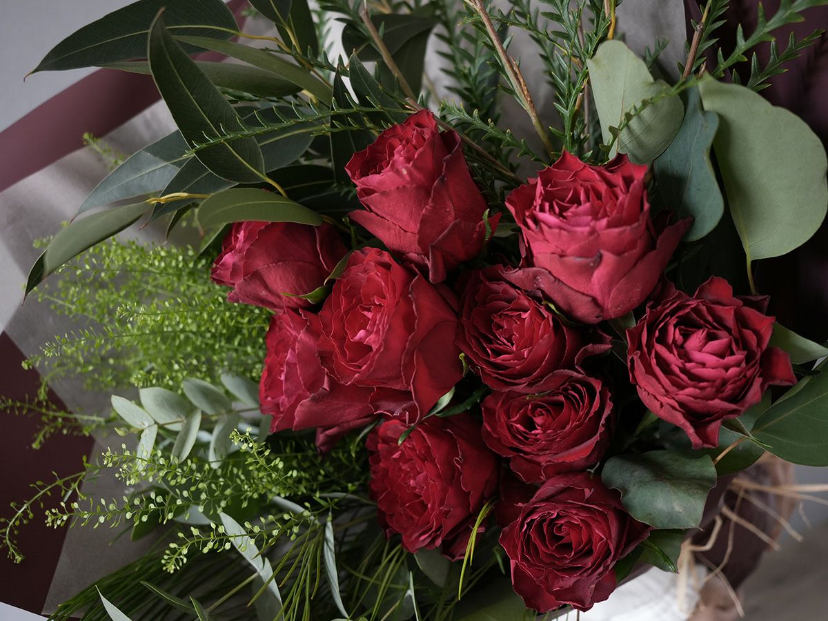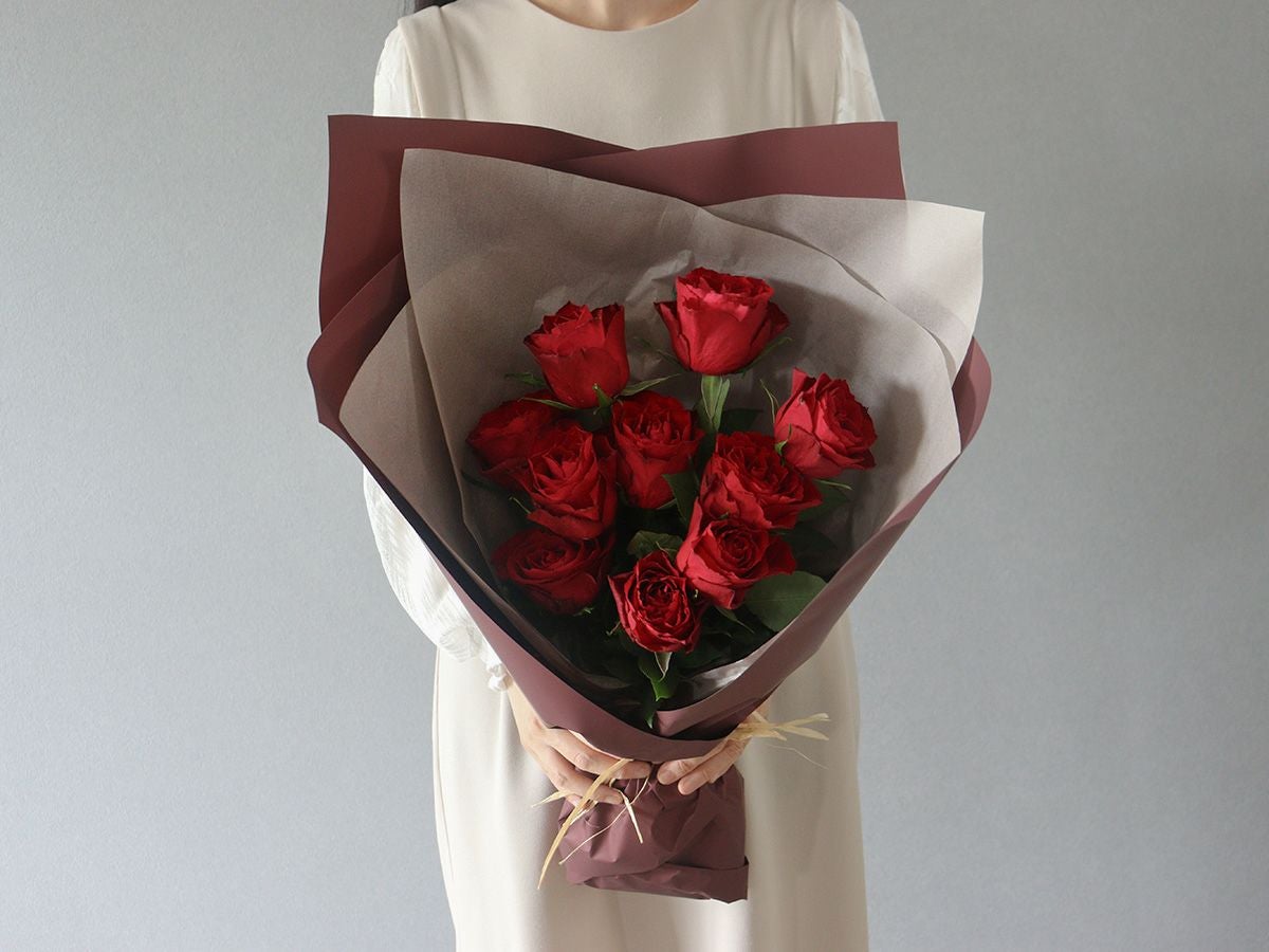 ソジャンミ農園のローズブーケ:マダムレッド10本と季節のグリーン