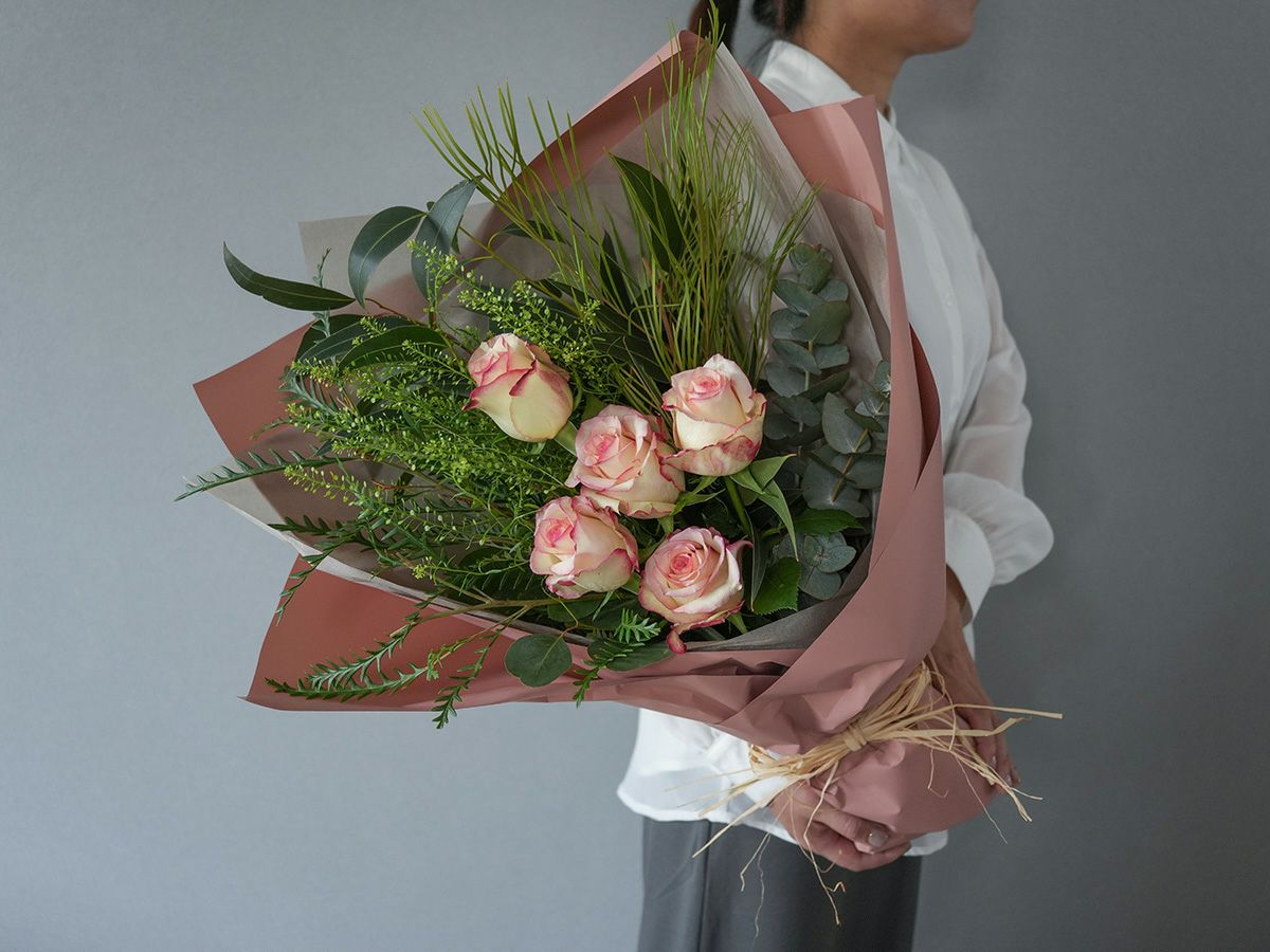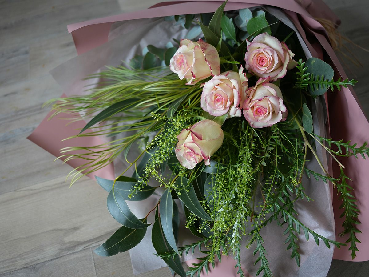 ソジャンミ農園のローズブーケ:トルメンタ5本と季節のグリーン