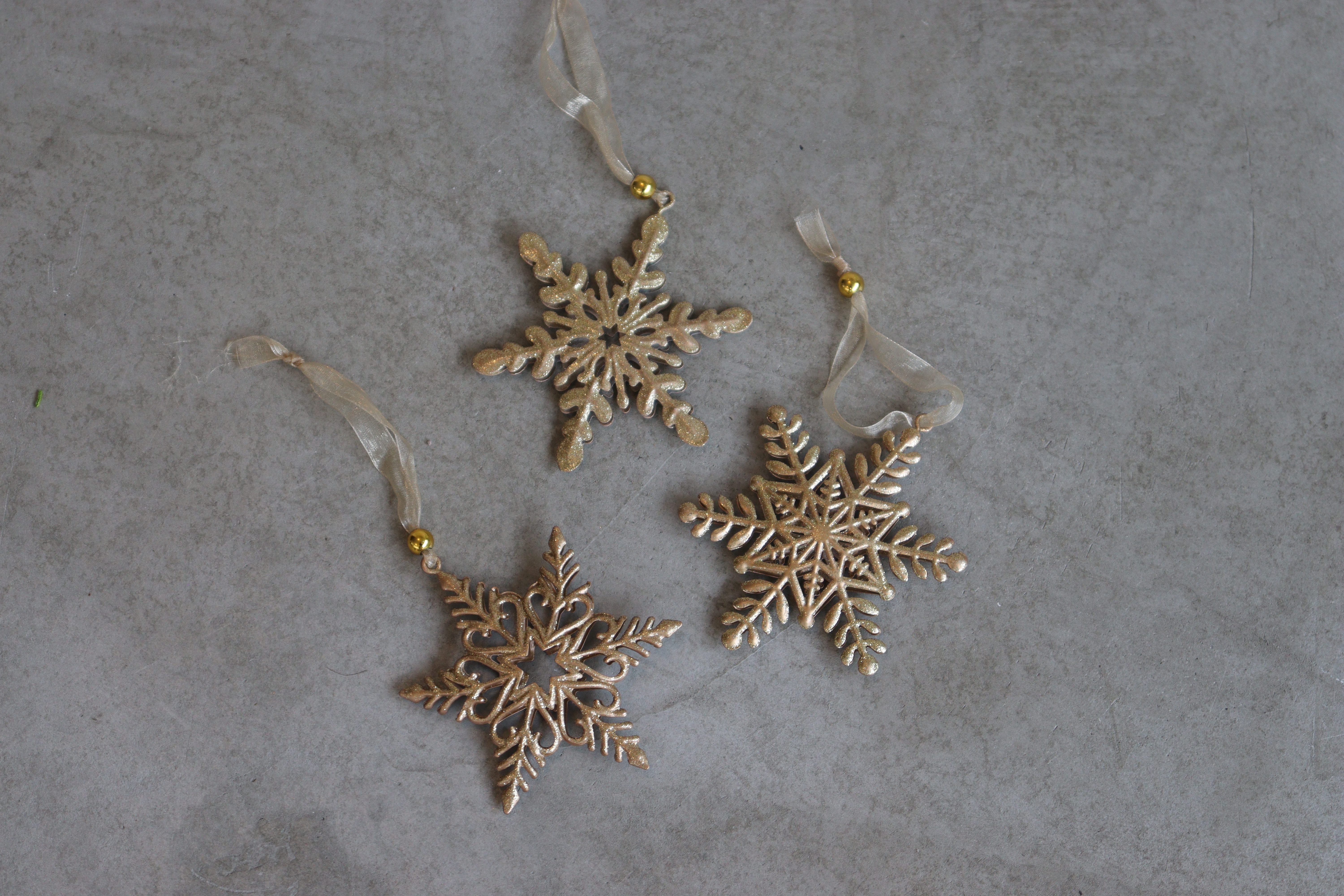 雪の結晶をモチーフにしたオーナメント。 3種の中から1つランダムでお付けします。