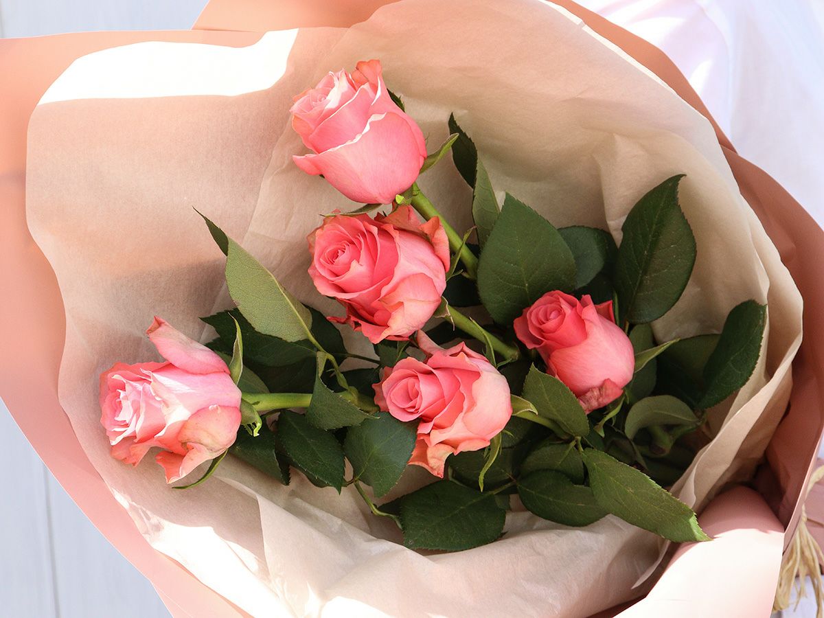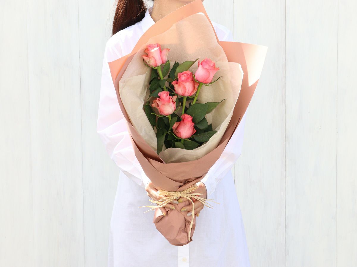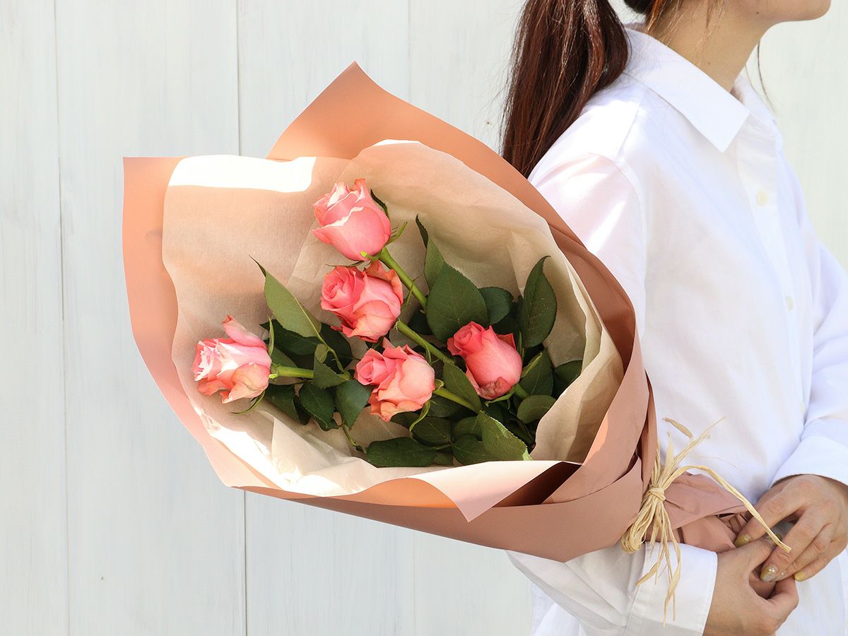 力強さをより感じられるよう、シンプルにまとめたローズブーケ。