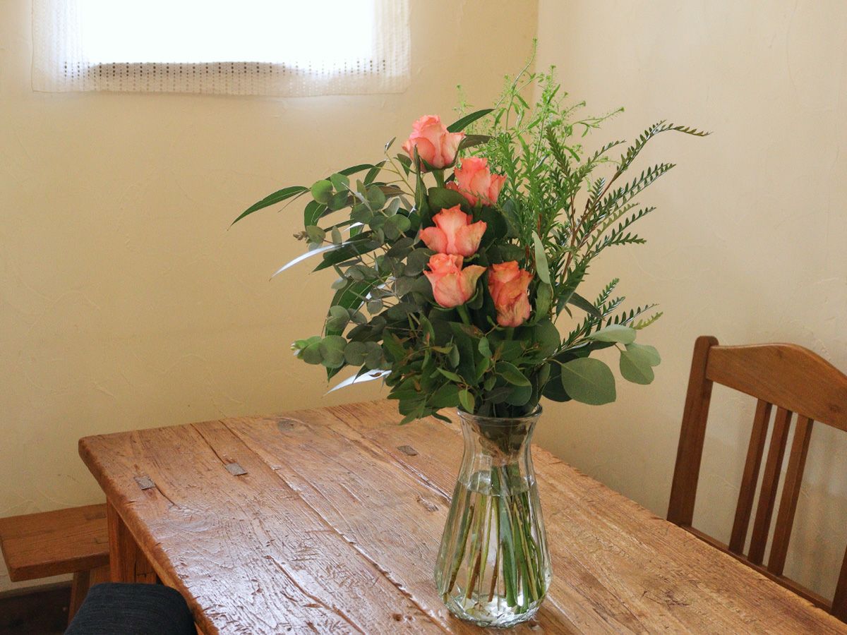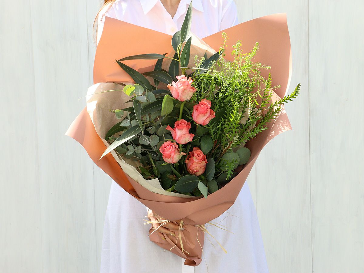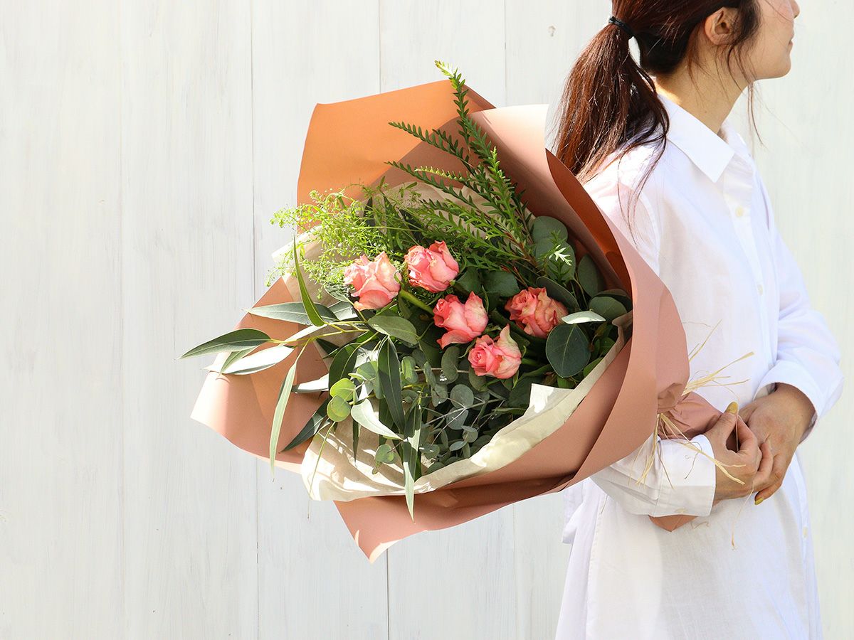 バラに季節のグリーン(葉物)を合わせたローズブーケ。