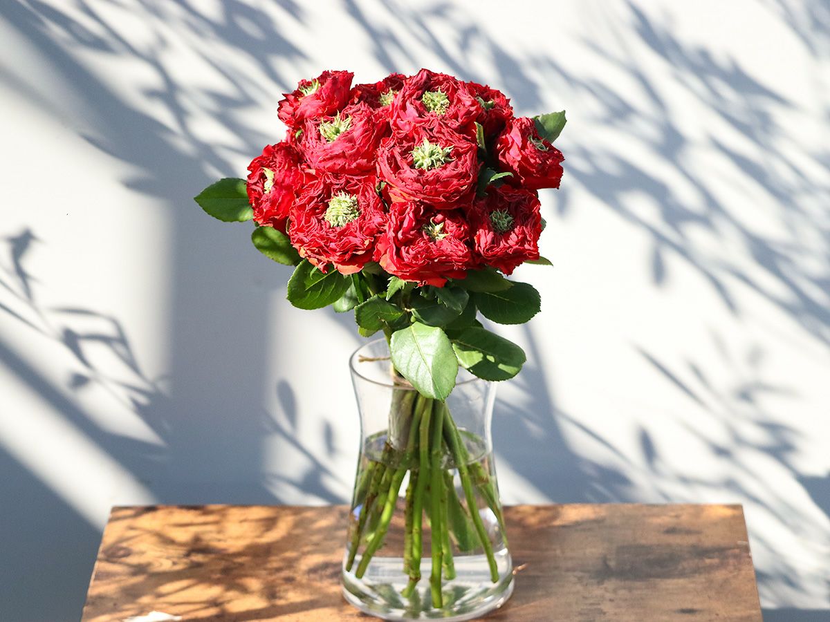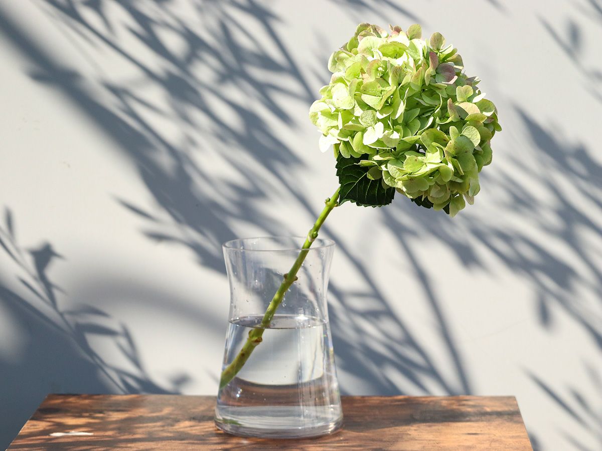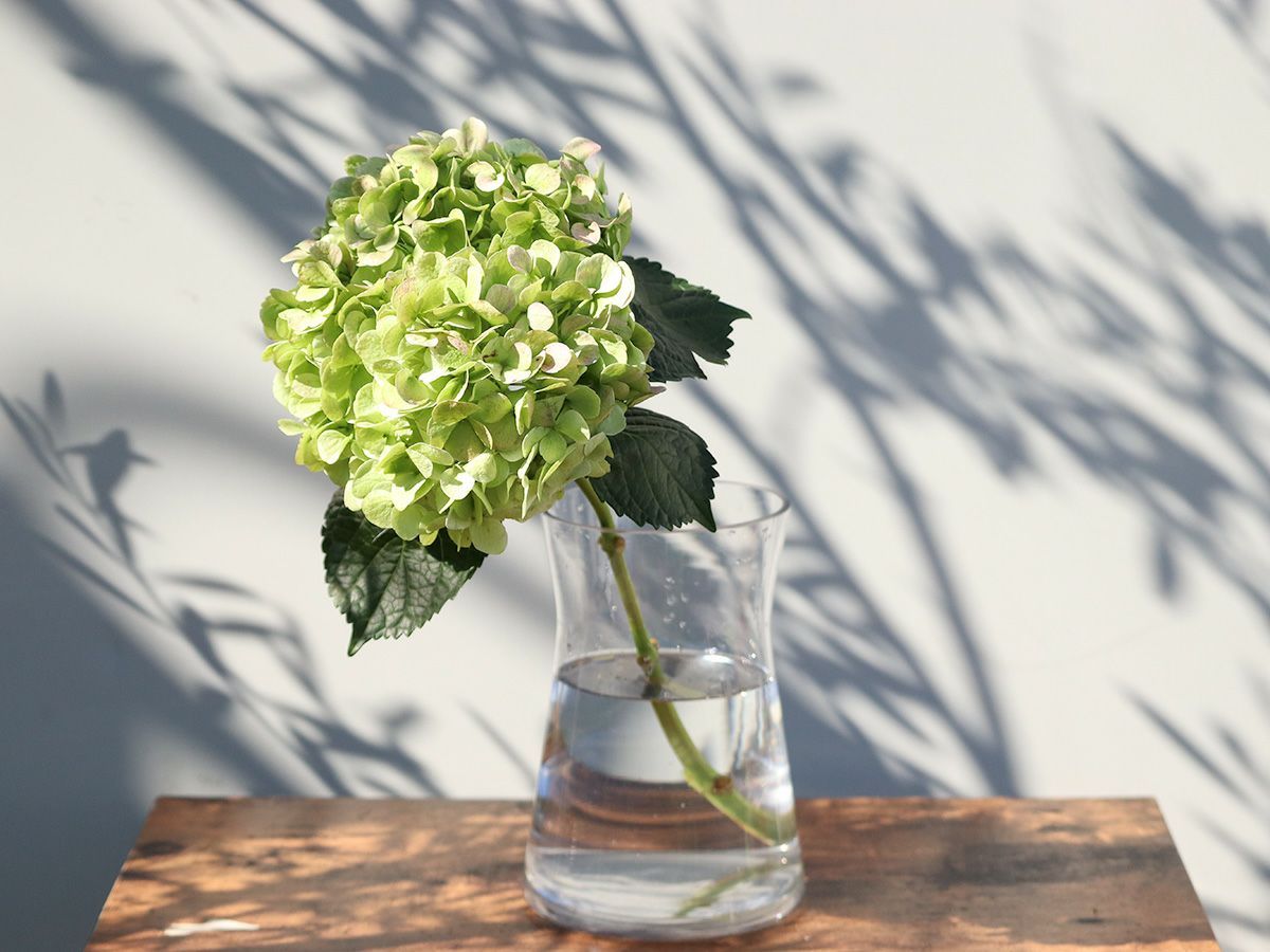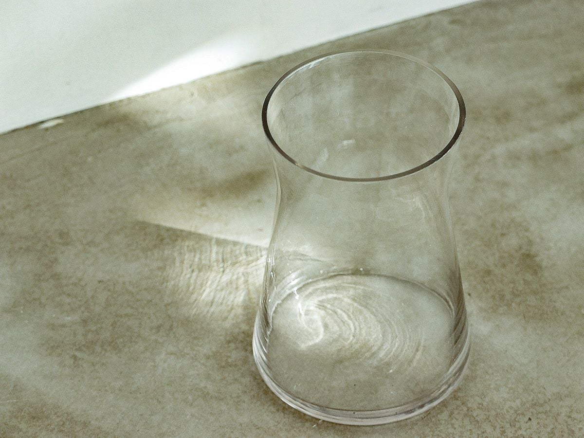 裾広がりで安定感のあるデザイン。くびれがあることで花やブーケをスタイリッシュに飾ることができます。シンプルなのでどんな花とも合わせやすく、数輪からブーケまで幅広くお使いいただけます。