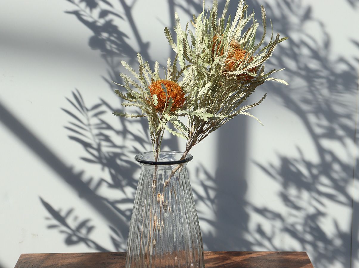 シンプルでありながら、シェイプが美しいガラスベース。口が狭めで安定感もあるので枝ものなどにも向きます。フラワーベースを初めて購入される方にもおすすめです。