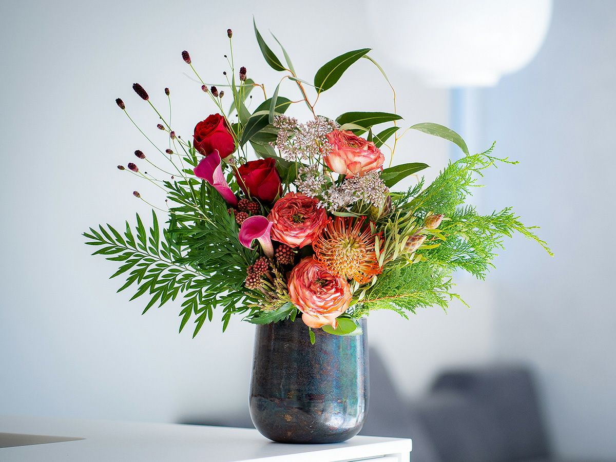 季節のプロテアを束ねたおまかせフレッシュブーケ(赤・ピンク系)